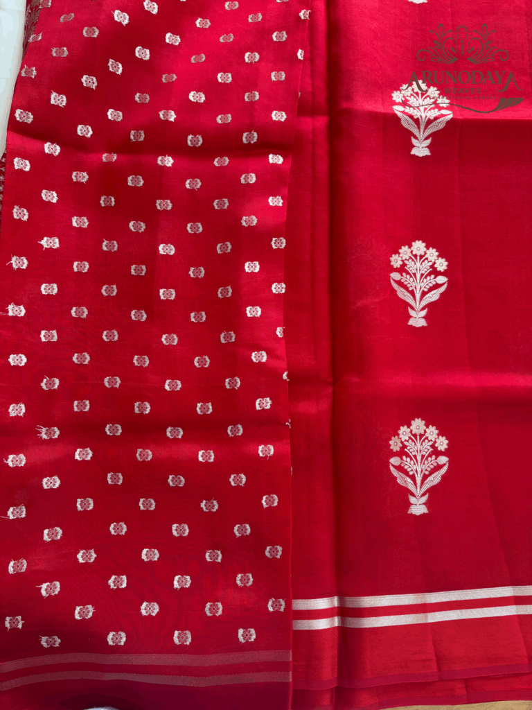 Pure Organza Strip Kadwa Butta Banarasi Saree #BNR127
