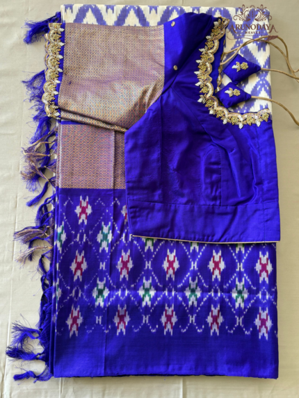 – *Double Weaving:* Pochampally sarees are known for their double weaving technique, which involves the interlacing of warp and weft threads to create intricate patterns. This method ensures the sarees are durable and have a luxurious texture, making them perfect for any occasion.