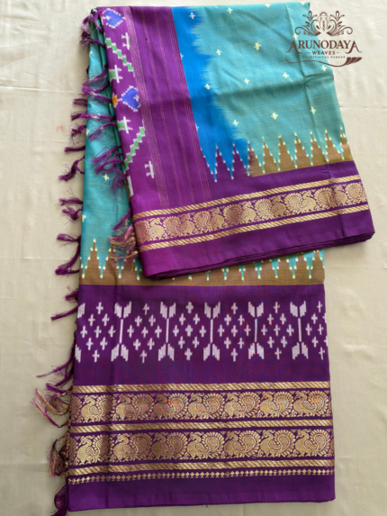 – *Double Weaving:* Pochampally sarees are known for their double weaving technique, which involves the interlacing of warp and weft threads to create intricate patterns. This method ensures the sarees are durable and have a luxurious texture, making them perfect for any occasion.