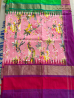 Ikkat Floral print Kanchipuram Boader Silk Saree