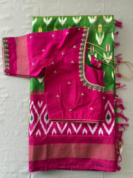 SKU: #PC134 Categories: $200-$400, Floral Print, Long Borders, Pochampally Tag: Stitched Design Blouse Size Adjustable - 38-42