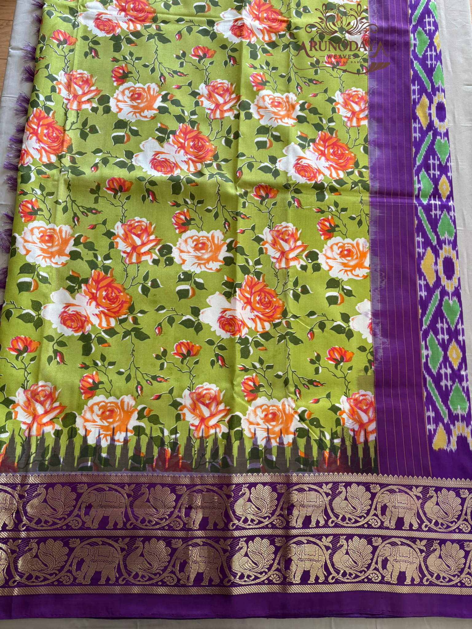Ikkat Floral print Kanchipuram boader Silk Saree