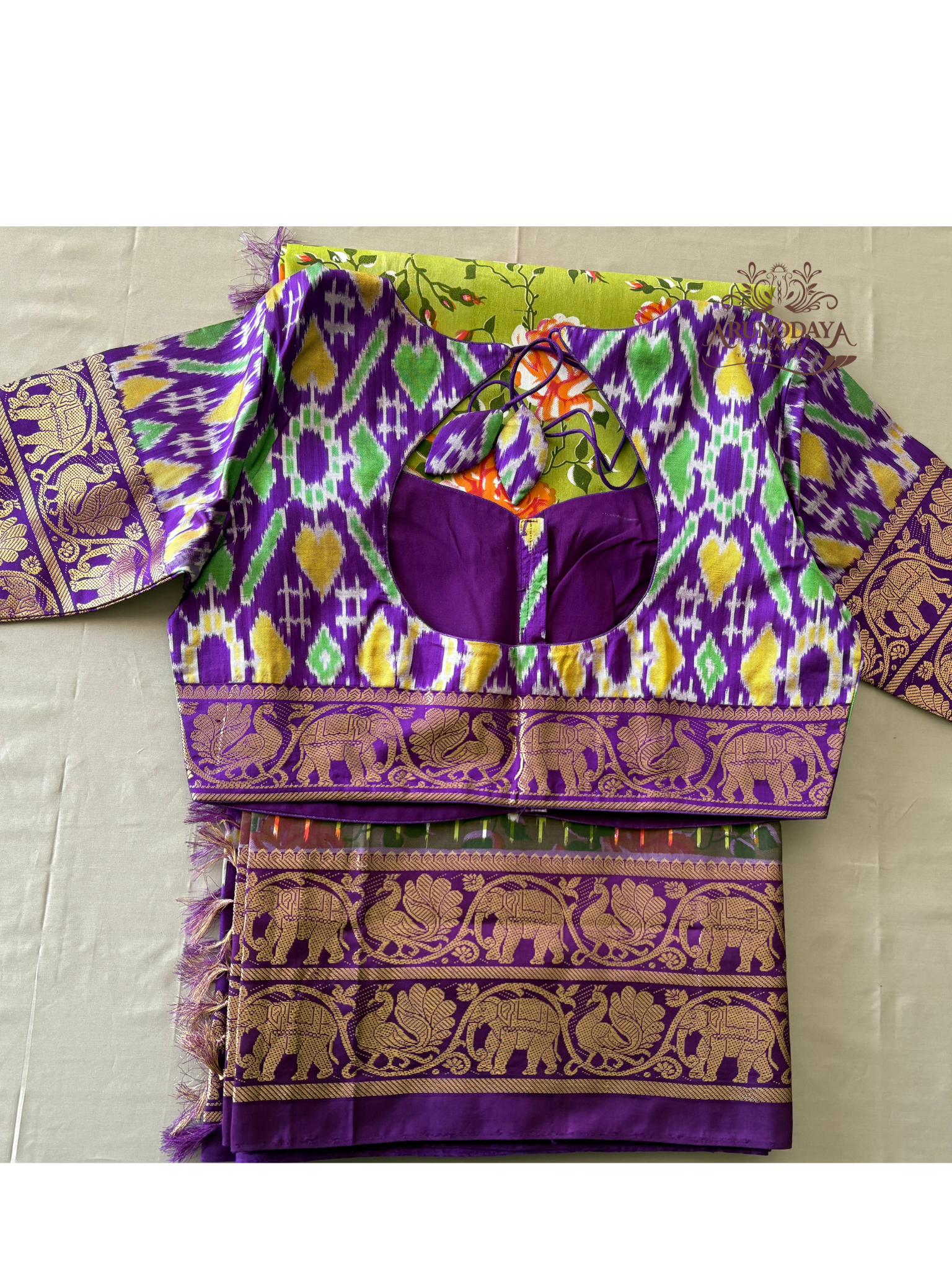 SKU: #PC136 Categories: Floral Print, Long Borders, Pochampally Tag: Stitched Design Blouse Size Adjustable - 38-42