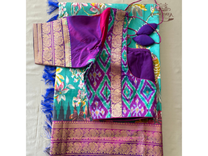 Ikkat Floral print Kanchipuram Boader Silk Saree