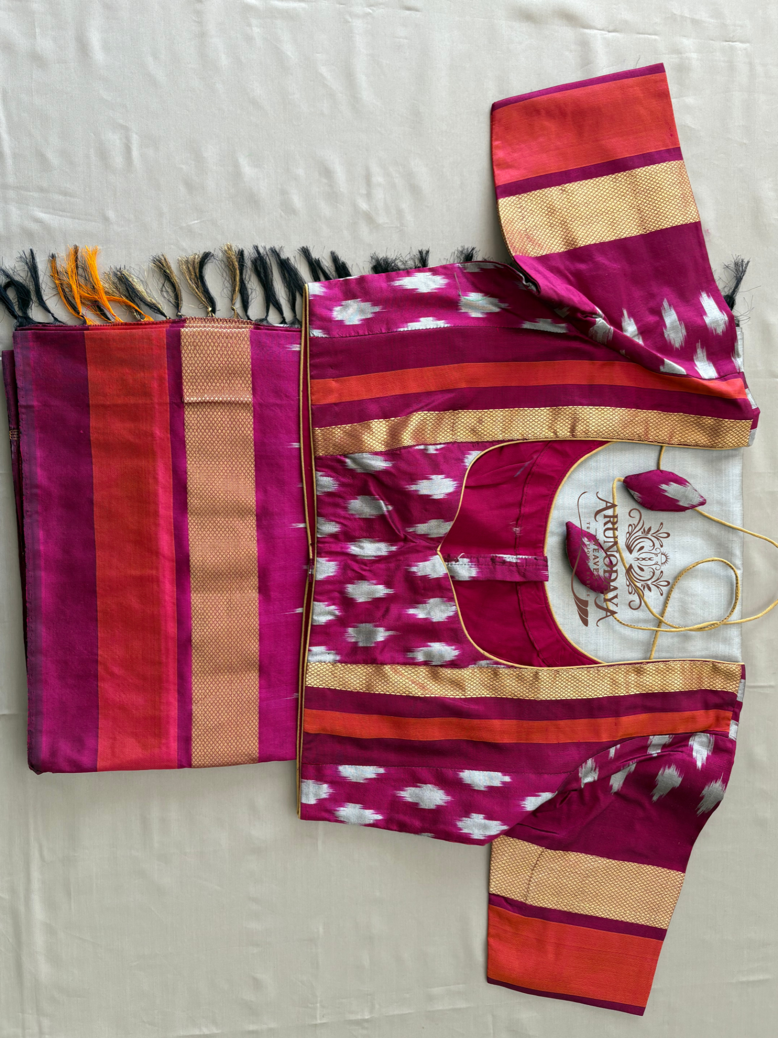 SKU: #PC101 Categories: $200-$400, Ikkat ZARI, Pochampally, Short Borders Tag: Stitched Design Blouse Size Adjustable - 38-42
