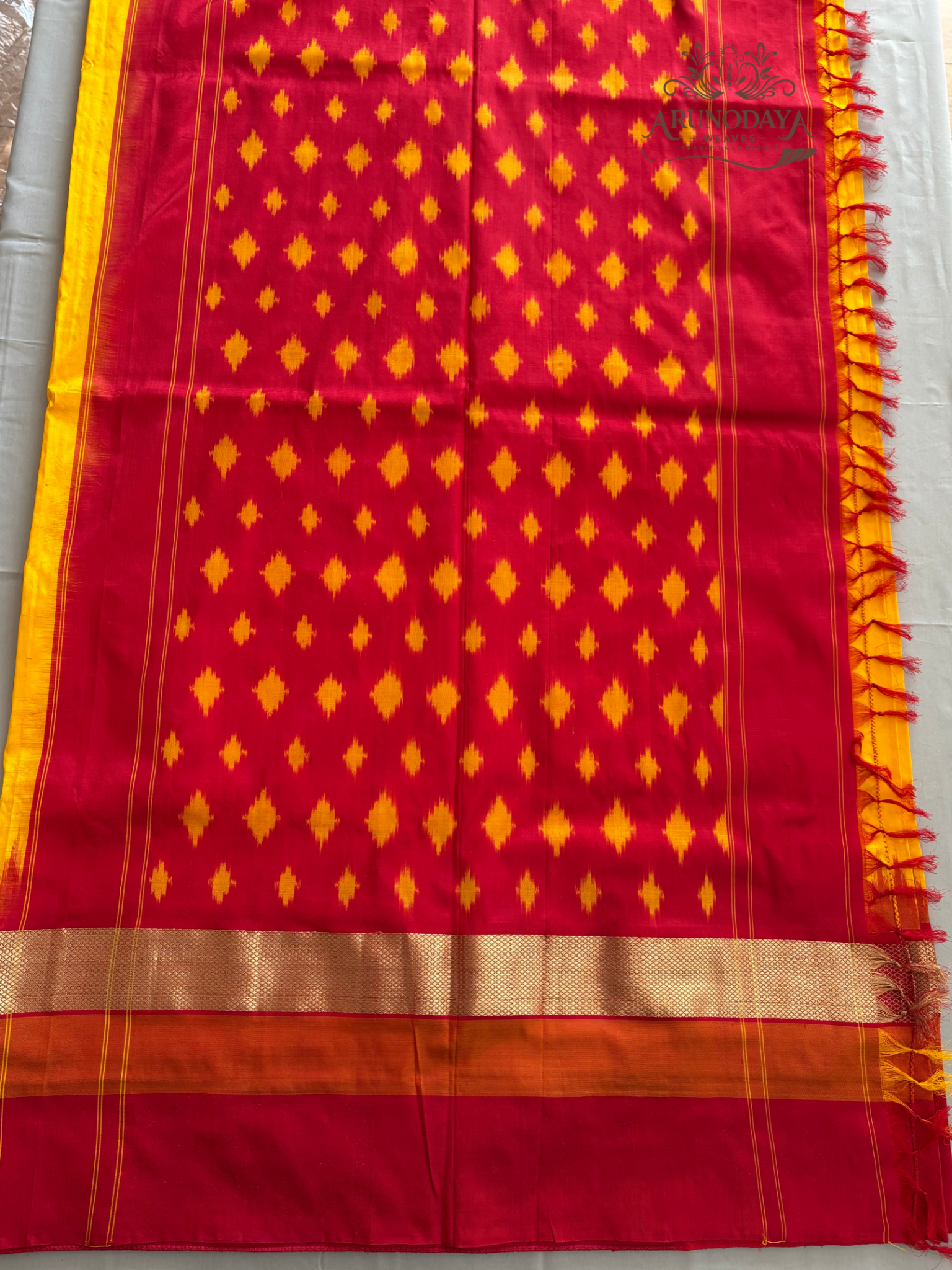 – The saree is crafted using double weaving techniques, which not only enhance its durability but also give it a richer texture and a more pronounced pattern.