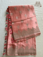 Baby Pink Venkatagiri Pattu saree with a plain border and 120 Butas #VG104