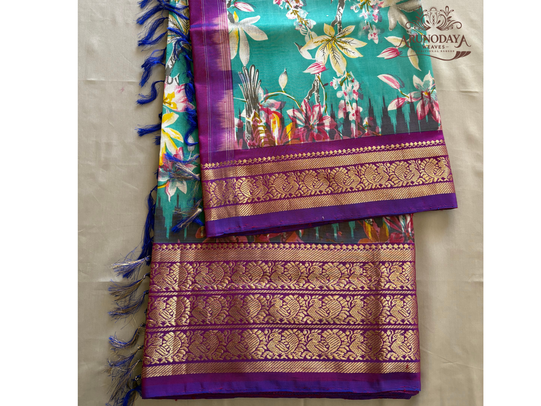 Pure Handloom floral print Kanchipuram boader Silk Saree