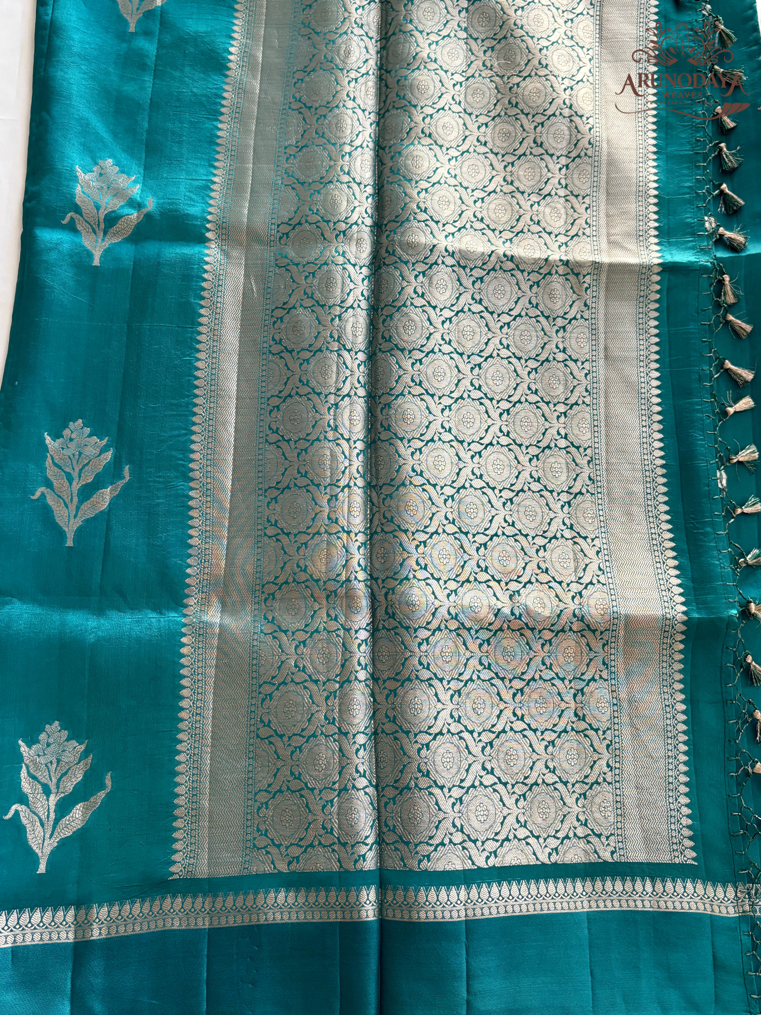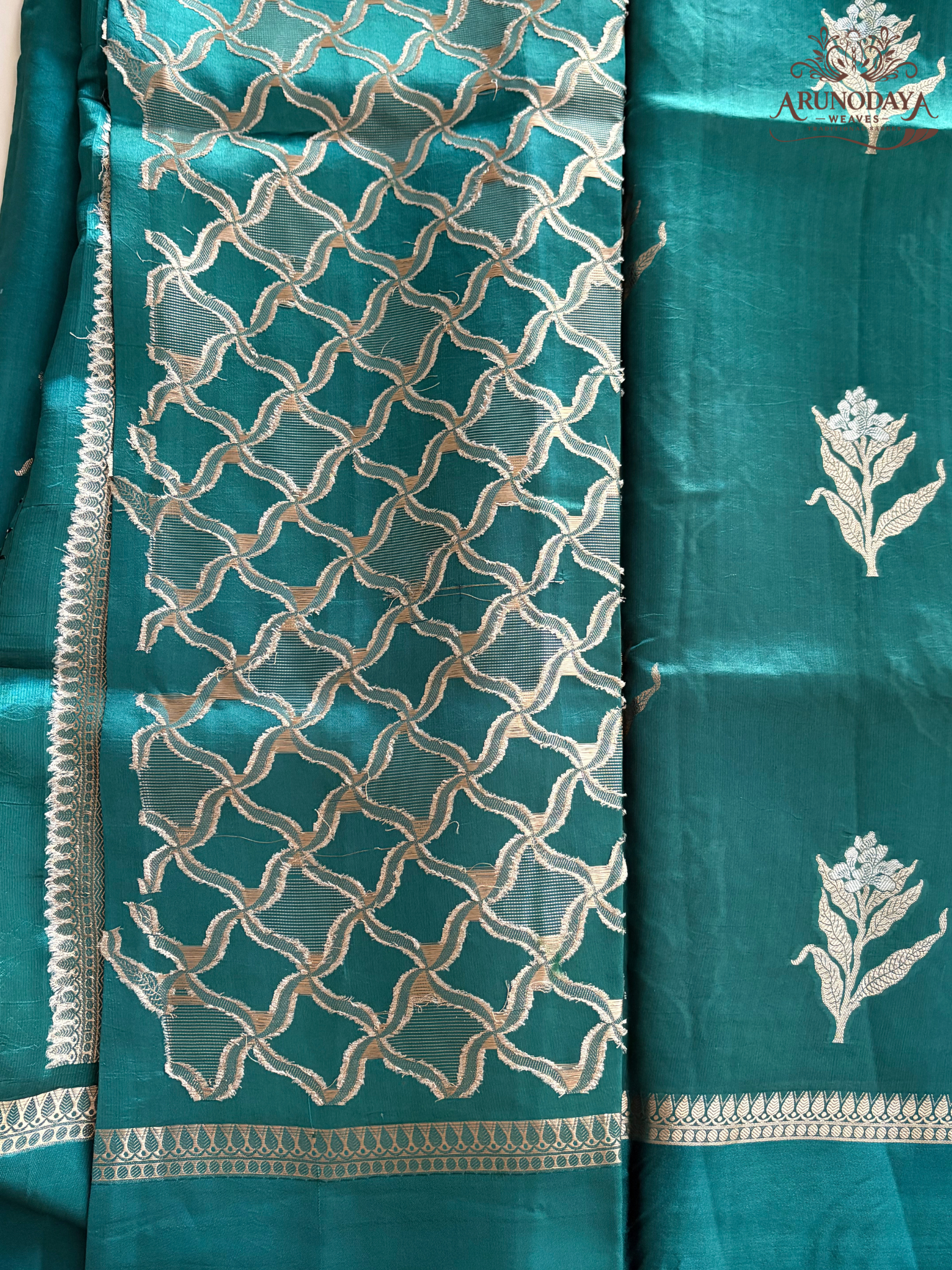 Design: Traditional Banarasi handloom with intricate floral and paisley patterns