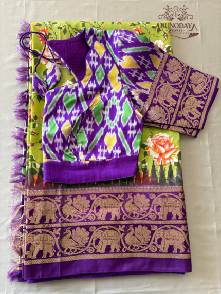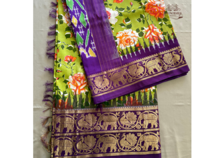Ikkat Floral print Kanchipuram boader Silk Saree
