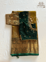 Green/Gold Venkatagiri Pattu saree with 240 Butas # VG111