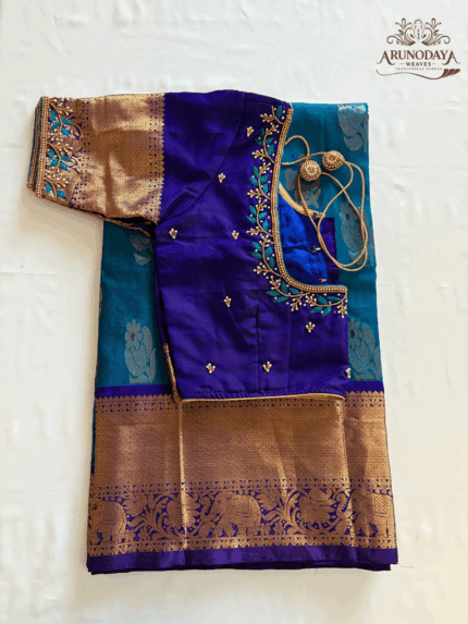 Be the first to review “Uppada Pattu Kanchi Double Border Saree with Maggam Work Blouse #UPD114” Cancel reply