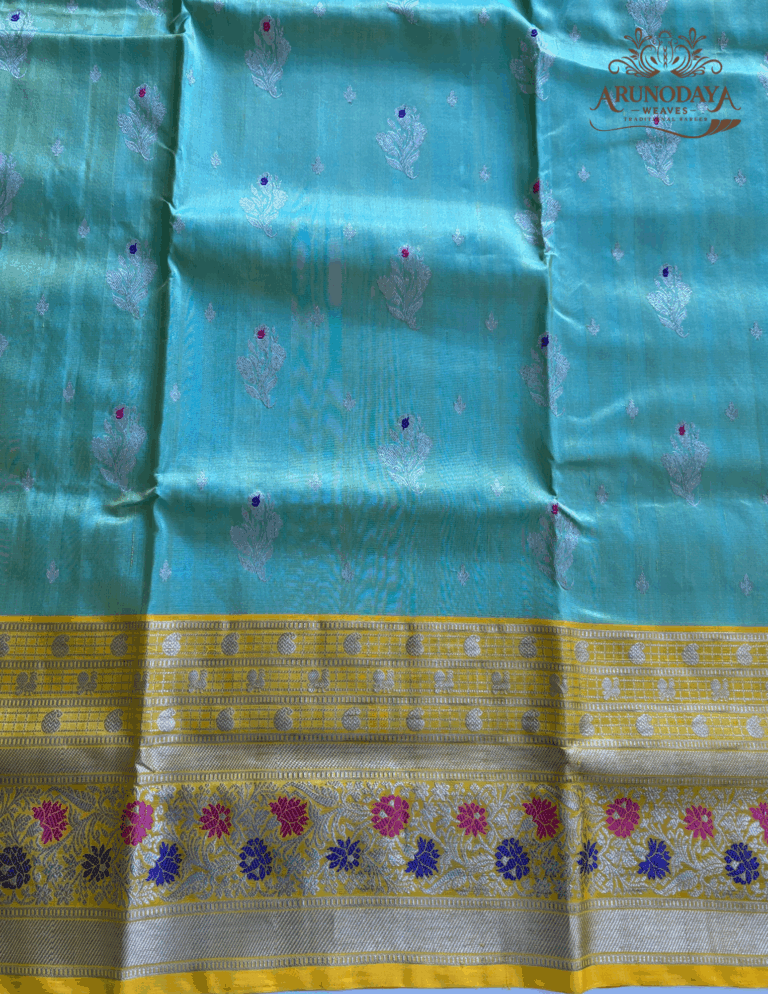 Tblue/Gold Venkatagiri Pattu saree with 180 Pythani Mix Butas #VG124